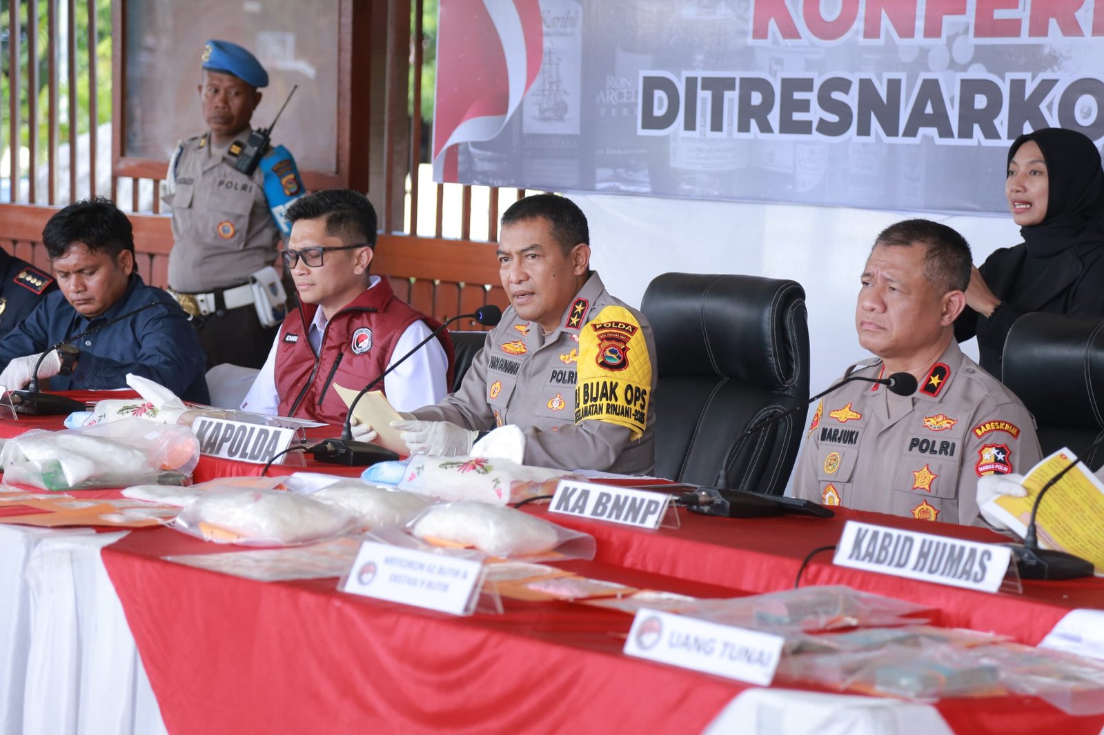 Disebutkan, rincian barang bukti narkotika yang berhasil diamankan di awal tahun 2025, yakni sabu seberat 6,9 kg, ganja sebanyak 120,36 gram dan ekstasi sejumlah 9 butir.