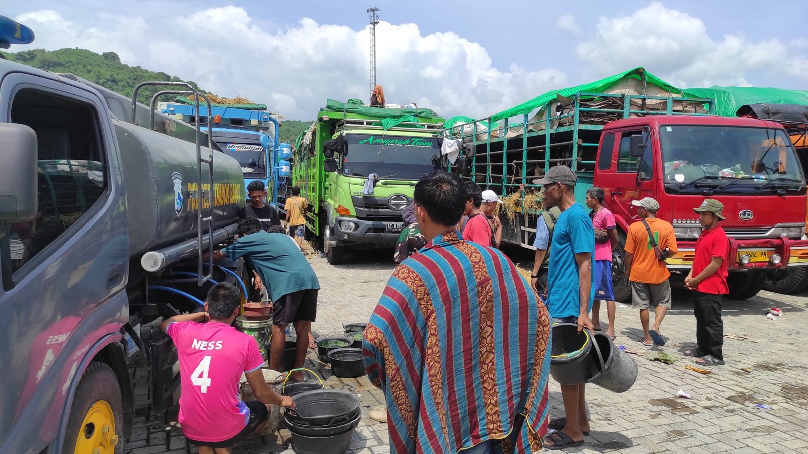 Dalam situasi cuaca panas ekstrem yang melanda, kepolisian bergerak cepat menyalurkan bantuan air bersih guna memenuhi kebutuhan vital ratusan ekor sapi yang siap diberangkatkan menuju Pulau Jawa.