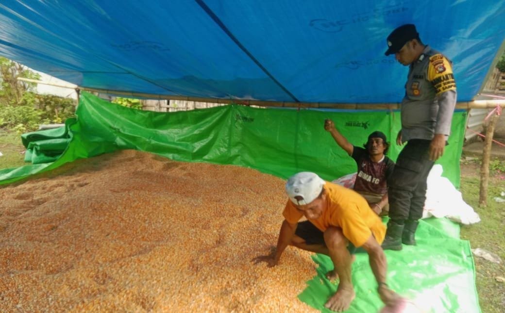 Seperti yang dilakukan oleh Bhabinkamtibmas Polsek Soromandi Polres Bima Polda NTB Bripka Sukarna mendampingi dan membantu menjemur jagung milik warga binaan di desa Sampungu Kecamatan Soromandi Kabupaten Bima.