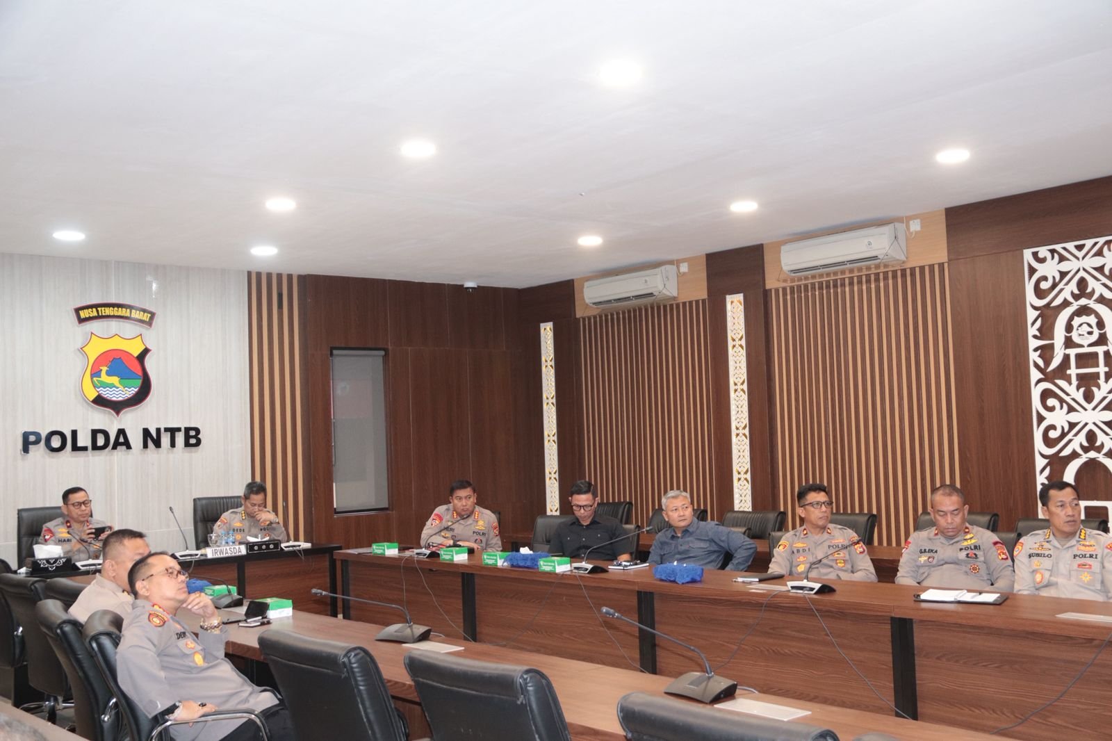 Polda NTB turut ambil bagian dalam kegiatan nasional ini dengan mengikuti jalannya zoom meeting dari Gedung Presisi Polda NTB, yang dihadiri langsung oleh Wakapolda NTB, Irwasda, Karops, Dir Intelkam, Karorena, Dir Reskrimsus, Dir Samapta, Kabagdaloops, dan Dansat Brimob.