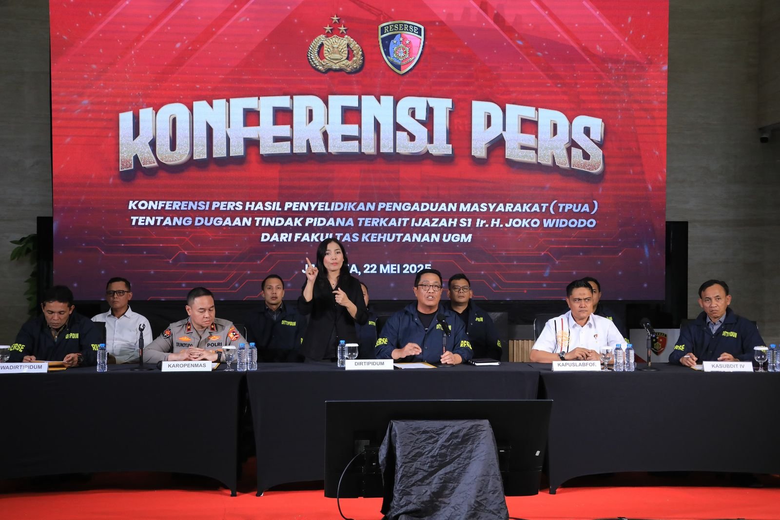 Jakarta – Bareskrim Polri menegaskan bahwa dokumen ijazah Joko Widodo dinyatakan asli dan sah berdasarkan hasil penyelidikan dan uji forensik yang mendalam. Hal ini disampaikan dalam konferensi pers oleh Direktorat Tindak Pidana Umum (Dittipidum) Bareskrim Polri di Lobby Utama Gedung Awaloedin Djamin, Bareskrim Polri, Jakarta, Kamis (22/5).