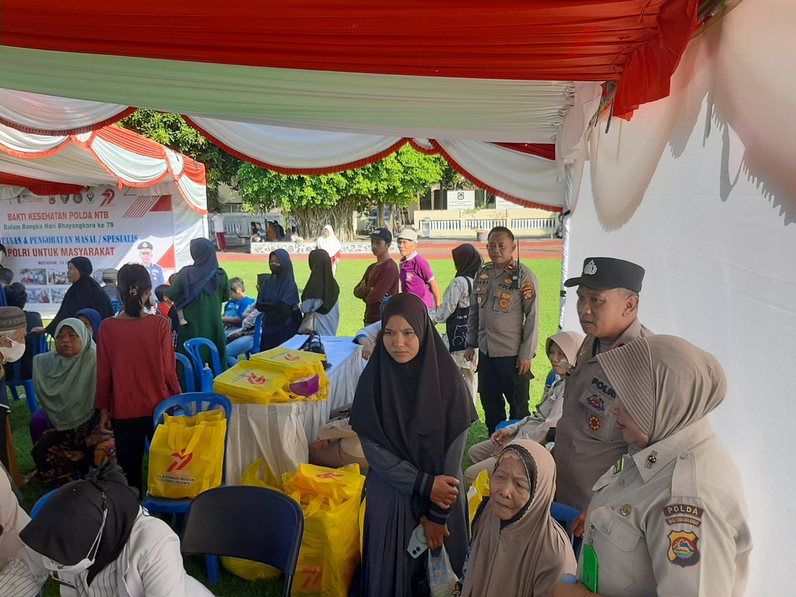Mapolda NTB Ramai, Polsek labuapi Dampingi Warga Labuapi Ikuti Bakti Kesehatan Polri