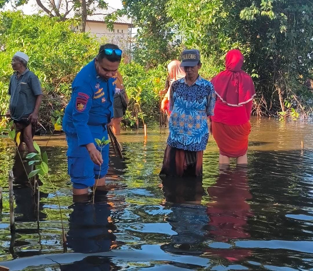 LOMBOK TIMUR—Menyemai harapan untuk masa depan lingkungan yang lebih baik, Direktorat Polisi Perairan dan Udara (Ditpolairud) Polda NTB menggelar aksi nyata dengan menanam 200 pohon mangrove di pesisir Pantai Dusun Kokoq Pedeq, Desa Sugian, Kecamatan Sambelia. Kegiatan yang melibatkan Kapal Polisi XXI-1002 dan XXI-2012 ini menjadi bukti komitmen Polri dalam menjaga kelestarian alam.
