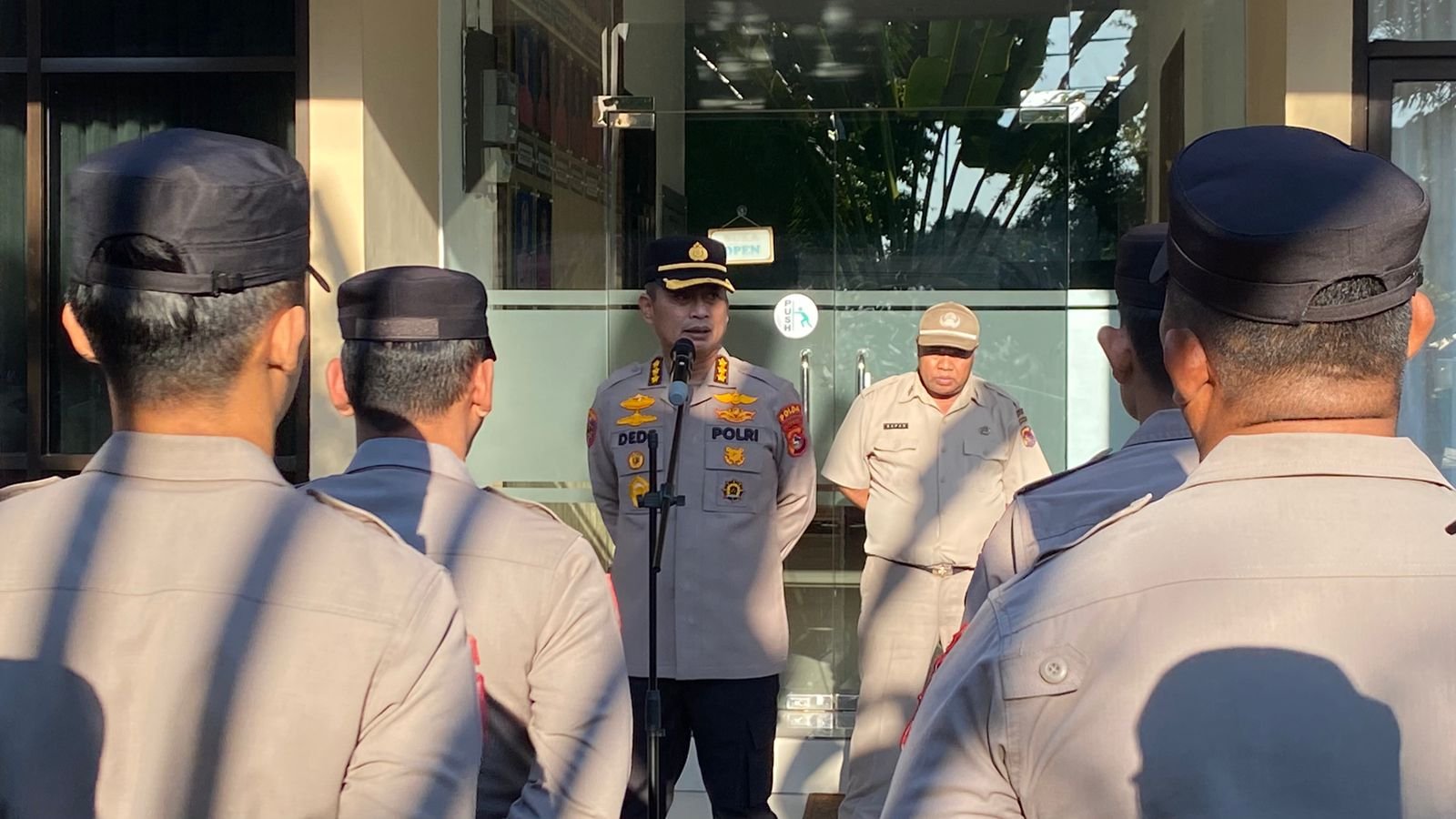 Inspektur Pengawasan Daerah (Irwasda) Polda NTB Kombes Pol Dede Ruhiat Djunaedi, S.I.K., M.H. menyampaikan manfaat Whistle Blower System dan SP4N LAPOR pada saat pelaksanaan apel pagi Satuan Kerja Itwasda di loby Gedung Bhayangkari Polda NTB Rabu 8 Oktober 2025.