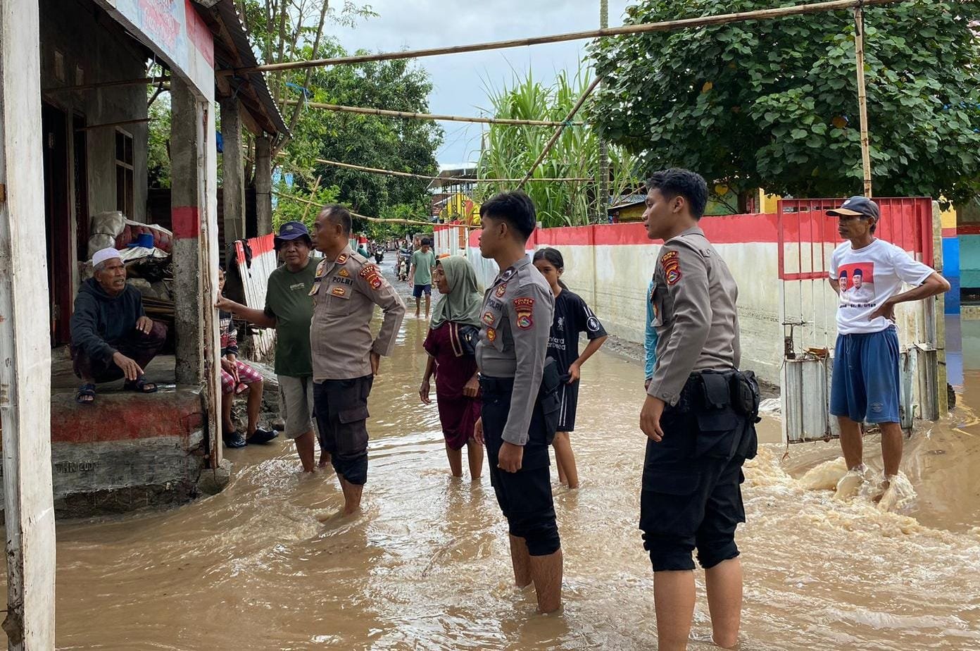 Lanjutnya, setelah itu personel Satsamapta melanjutkan kegiatan dengan mengecek lokasi banjir dan luapan sungai di Desa Dena.